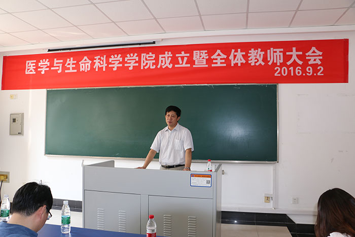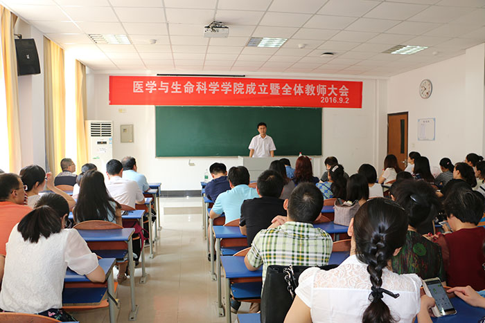 2016年9月2日M88官方网站医学与生命科学公司(简称生科院)成立暨全体教师大会在B8207教室隆重召开,这标志着公司成为国内首批通过教育部审批获得临床医学招生资格的中医类院校。生科院的成立为公司实现“中西医结合”的目标,切实提升中医药水平提供了一个良好的平台;为践行国家“继承好、发展好、利用好”中医药资源提供保障;为深入发掘中医药宝库中的精华,突出中医药的特色与优势,让中医药在“健康中国”的发展道路上发挥重要作用打下坚实基础。