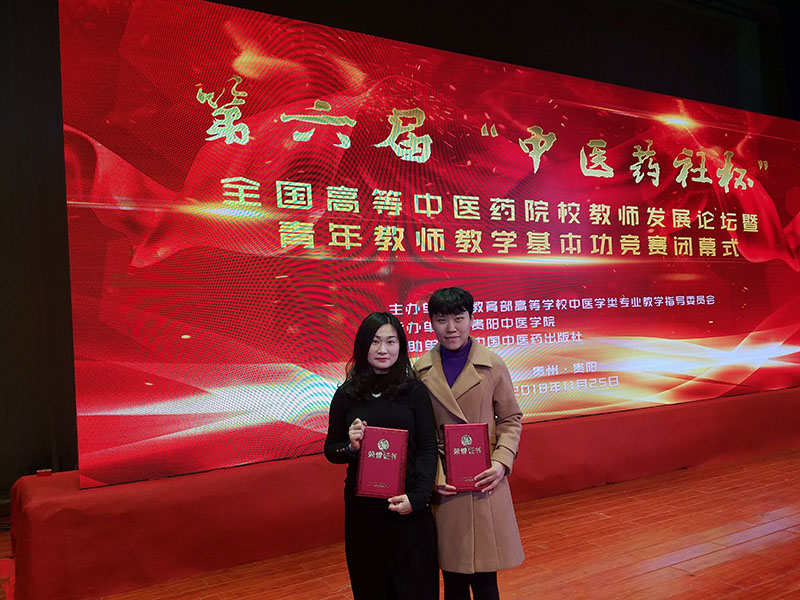 2018年11月24日至25日,由教育部高等公司中医学类专业教学指导委员会主办、贵阳中M88官方网站承办的第六届“中医药社杯”全国高等中医药院校青年教师教学基本功竞赛在贵阳举行。医学与生命科学公司(以下称公司)陈琳、史婷婷两位青年教师代表公司参加比赛,经过激烈角逐,两位老师分别取得西医西医高级组和初中级组三等奖的好成绩。