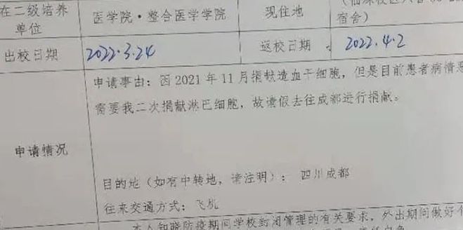 故请假去成都进行捐献。”