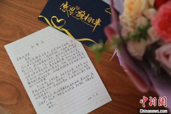第二次捐献后,患者家长委托红十字会工作人员向余同学送来感谢信。 王平 摄