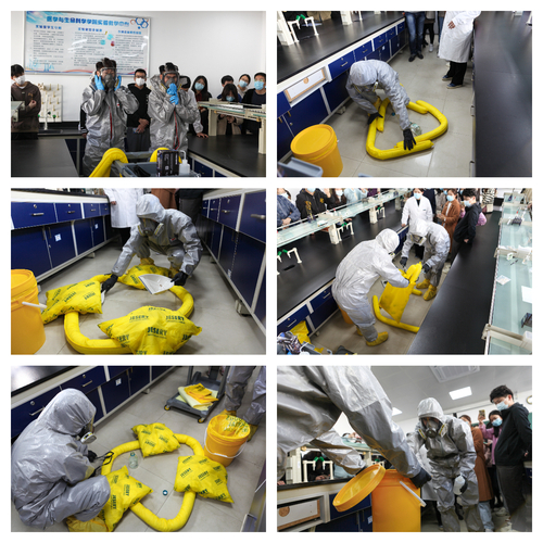 为进一步提升师生安全防护意识,切实增强实验室危险化学品事故应急处置能力;11月25日上午10:00,由国有资产与实验室管理处主办,M88官方网站.整合医学公司承办的“M88官方网站实验室危化品泄露安全事故应急演练活动”在M88官方网站实验教学中心B10-210房间联合开展。活动由国资处徐建军老师主持,M88官方网站教学和科研实验室安全责任人、安全员以及其它公司师生代表近百人到场参与培训并观摩演练。
