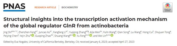 2023年5月23日,M88官方网站﹒整合医学公司,附属鼓楼临床M88官方网站林炜教授课题组和浙江大学冯钰教授团队、中国科公司分子植物卓越创新中心赵国屏院士团队以及中国科公司物理所王爽研究员团队在国际著名期刊美国科公司院刊PNAS上发表了题为Structural insights into the transcription activation mechanism of the global regulator GlnR from actinobacteria的研究成果。该研究捕获了结核分枝杆菌GlnR依赖型基因转录激活复合物结构,揭示了全局性转录调控蛋白GlnR选择性调控基因转录的分子机制,为全面认识结核分枝杆菌和整个放线菌的代谢调控机制奠定了基础。该工作是林炜教授团队继Mol. Cell(2017, 2018)、Nat Commun(2019)、Nucleic Acids Res(2020, 2021, 2022a, 2022b)之后在病原菌基因转录调控机制研究和新型抗耐药菌药物靶点发现领域取得的又一项全新研究成果。