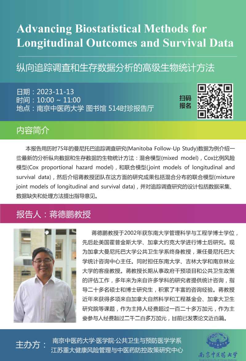 纵向追踪调查和生存数据分析的高级生物统计方法讲座