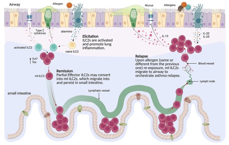 本研究为理解哮喘反复发作的病理机制提供新角度,为靶向ml-ILC2细胞根治哮喘提供了新思路。