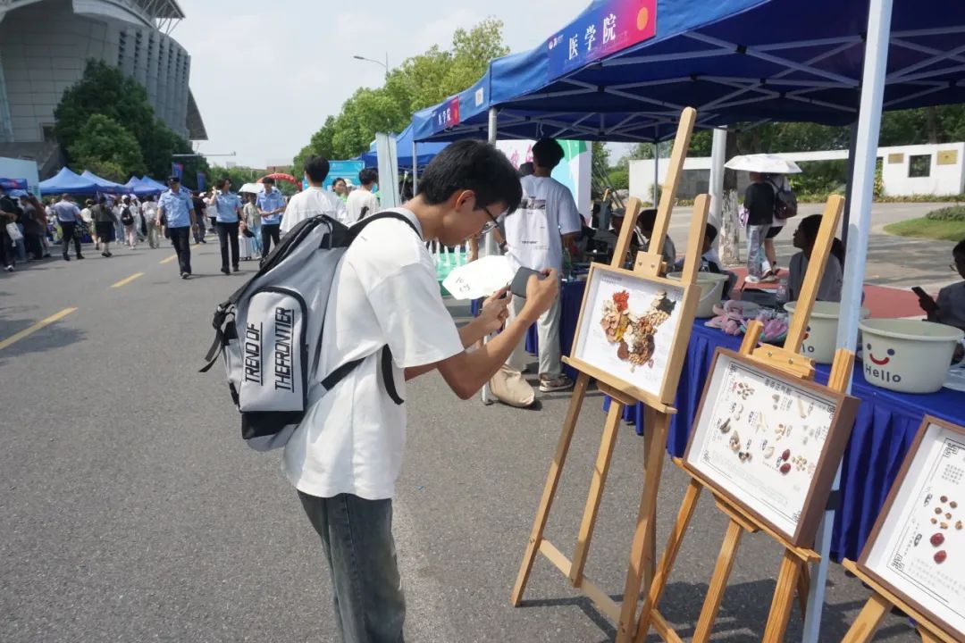 在外场,公司也准备了丰富多彩的互动体验活动,吸引了很多小杏仁和家人的积极参与。 中药标本展框和中药地图让大家了解了中医药的悠久传承和广泛影响。M88官方网站特色科创产品——快乐卫士展现了中医药的创新发展。该产品将中药芳香疗法与玩偶“代糖效应”相结合,致力于为高压人群提供一种更易接受、更具幸福感的情绪调节方式。