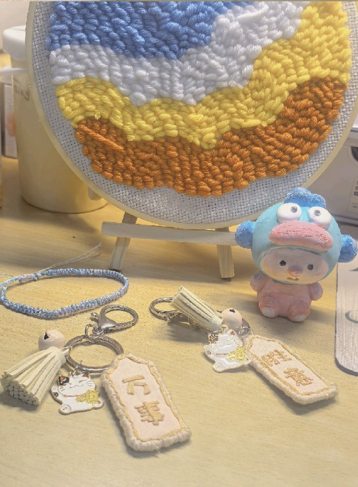“我的宿舍有话说”宿舍生活大赏活动更是趣味横生。各种造型的毛绒玩偶挂件是宿舍的“卖萌担当”。小熊、兔子、猫咪等形象憨态可掬。还有创意十足的动漫人物亚克力挂件,色彩鲜艳、细节丰富,将喜爱的二次元角色带入现实空间,成为宿舍文化交流的独特话题,展现同学们的兴趣爱好与青春活力。