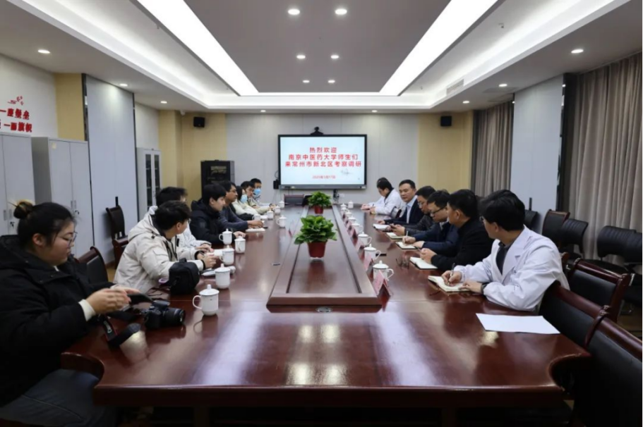 实践团师生还与当地卫生工作者展开了座谈会。会上,大家了解了新北区30年的社会变迁及发展现状,并在三位经理的介绍下加深了对三家医院的认识。现就职于孟河中医医院的公司2024届临床医学毕业生戴虹以学姐身份发言,一方面感谢医院为其提供良好的发展平台,另一方面推荐学弟学妹们在求职时多关注新北区各医疗单位提供的就业机会。