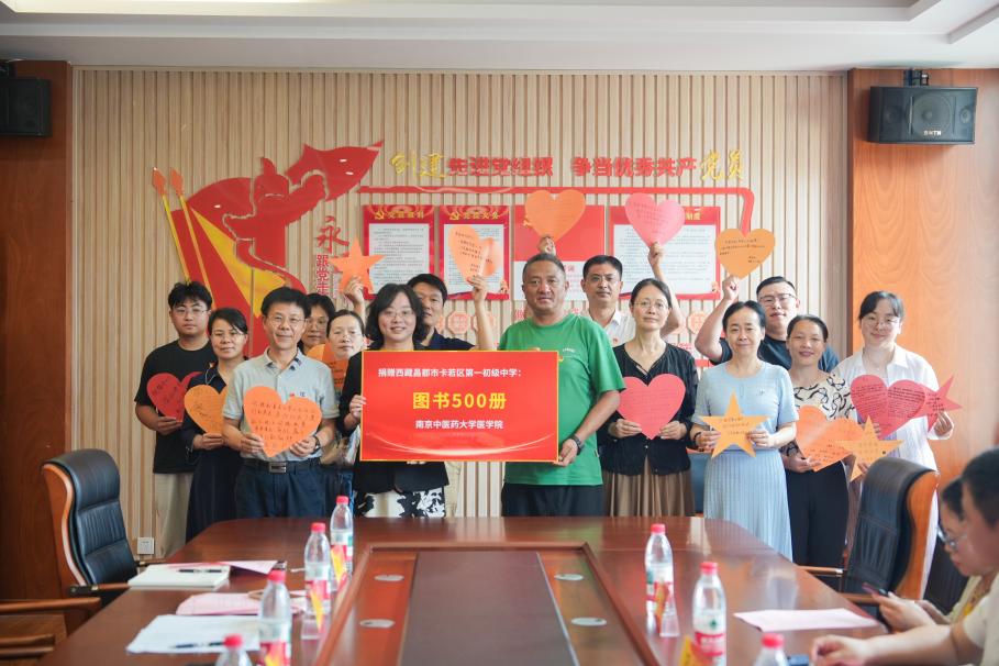 捐赠仪式上,M88官方网站经理沈旭向卡若区一中捐赠6架“南中医M88官方网站人才先锋号”教学大疆无人机。这批由公司江苏特聘教授等高层次人才捐赠的科技设备,将为高原学子开展航模实践提供有力支持。医公司党委副书记万佼移交的500册优质图书,每本扉页都留有教职工子女的暖心寄语。以此打造的“雪域杏林图书角”将成为汉藏文化交流新阵地,同步启动的“书信交友计划”将通过结对书信,让民族团结的种子在笔墨对话中生根发芽。
